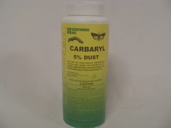 Carbaryl 5% Dust Insecticide Controls many insects in vegetable gardens & ornamentals Use in lawns for Fall armyworm & Sod webwormContains: 5% Carbaryl Insecticide Use on: Most vegetables, lawns, ornamentals and fire ant mounds. Controls: Mexican bean beetles, armyworms, leafhoppers, grass hoppers, tomato fruitworms, flea beetles, corn earworms, fire ants, ticks and fleas. Rate: For Vegetables, use 20 to 40 lbs. per acre. For Lawns, use 5 lbs. per 1,000 sq. ft. Application: For home gardens; dust plants thoroughly. Product Label