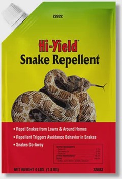 This product provides a powerful scent/taste repellent that snakes find unpleasant, triggers a natural reaction to escape and avoid. Hi-yield snake repellent does not harm snakes, it drives them away, naturally.